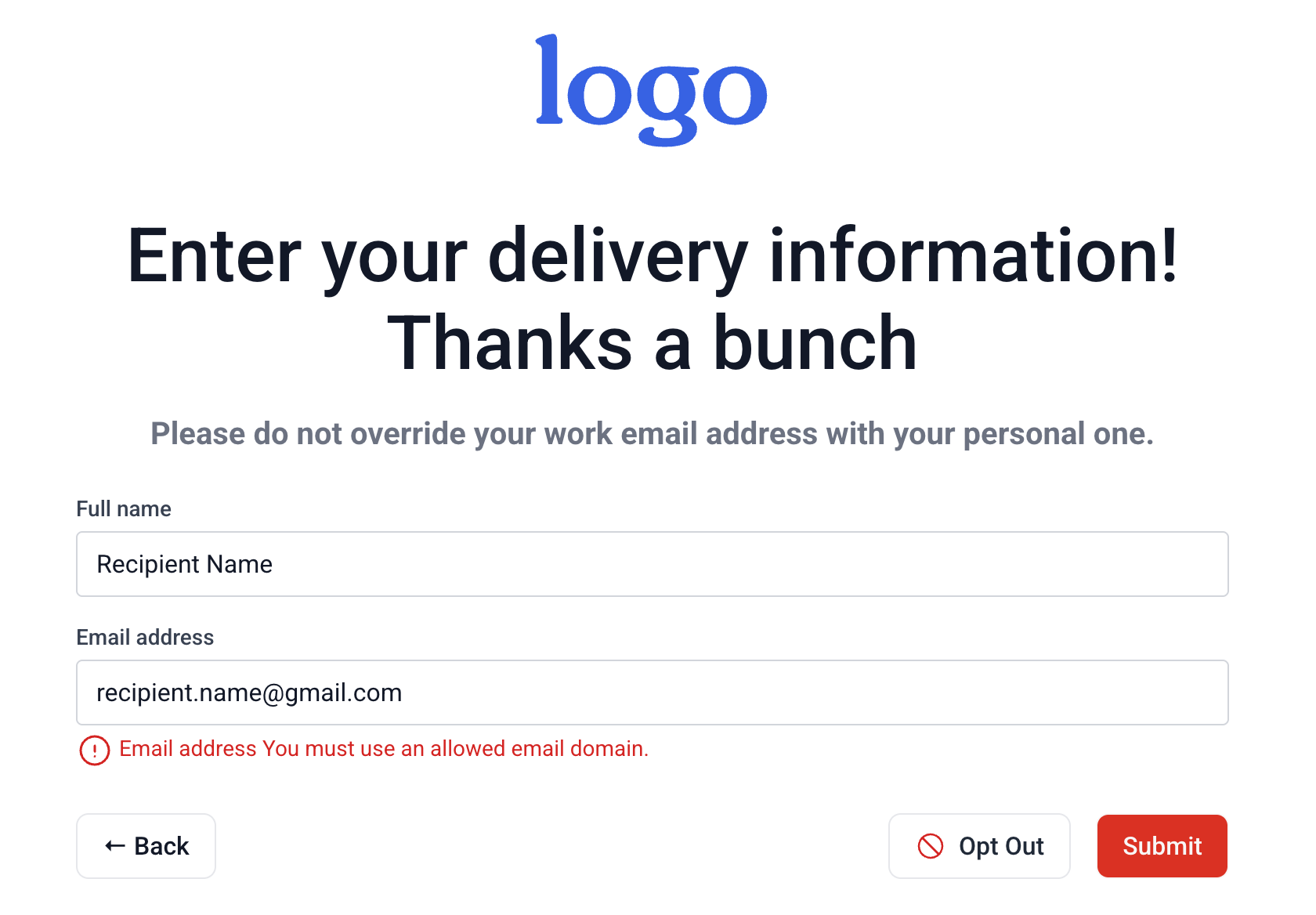 This is a great option for internal gifting programs to ensure employees use their work email address.