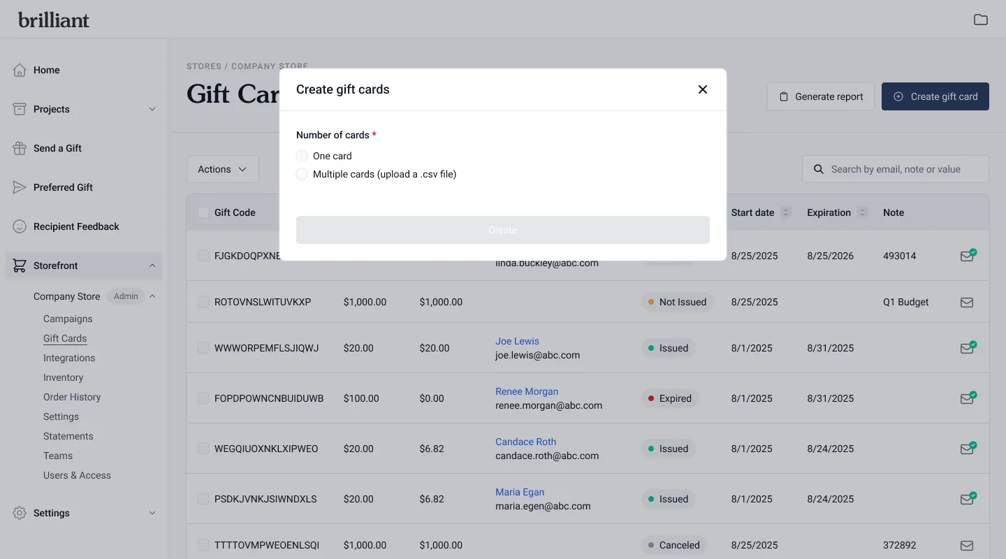 Choose whether to create one gift card or multiple gift cards.