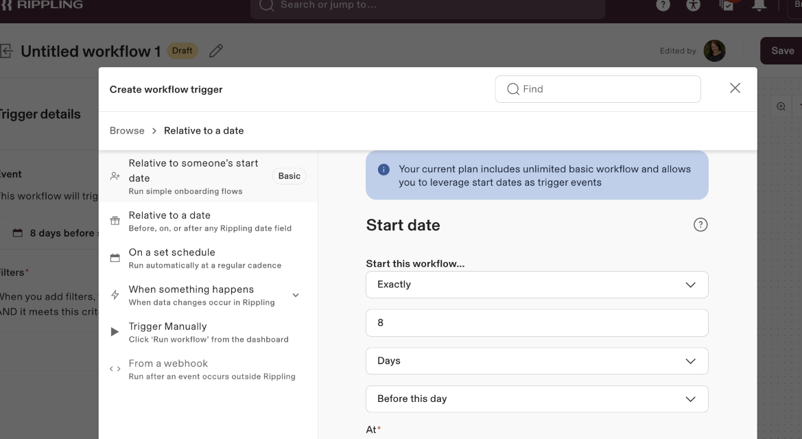The New Hire/Anniversary Automation Setup is available to all Rippling Admin users. Follow the documentation below to create your Workflow in your Rippling Workflow Studio and connect it to your Brilliant Preferred Gift Campaign. Additionally, you can view Rippling's Workflow Studio Getting Started Guide to get more information about Rippling workflows.