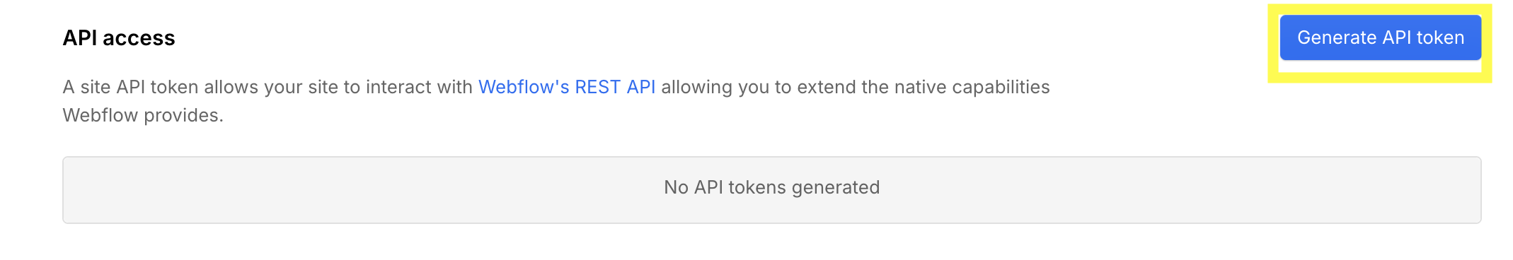 Copy the generated token to a safe place. After closing the window, you will no longer be able to view the token from Webflow.