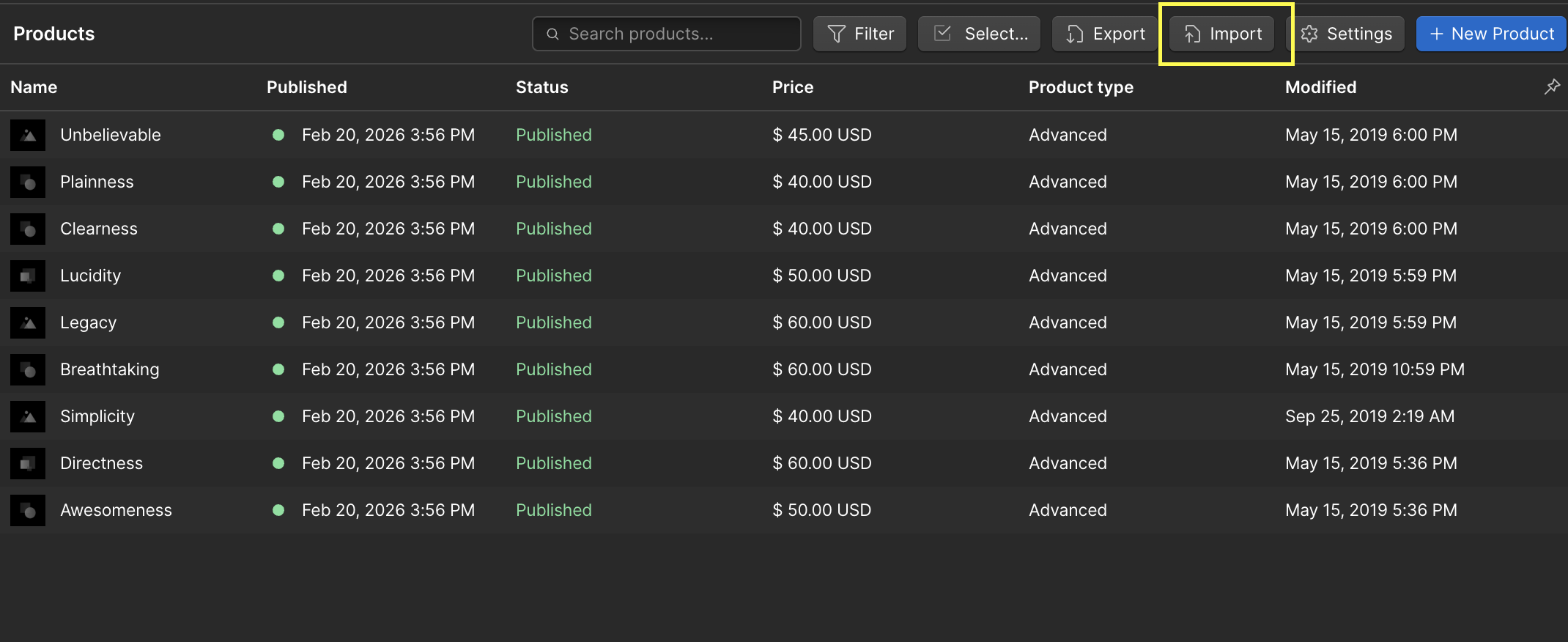 In order for Brilliant to keep track of order data with Webflow, there needs to be a common identifier between the products in Brilliant's system and the products in your Webflow Ecommerce store. To satisfy this requirement, Brilliant will send you a CSV file containing each product and variant in your store along with a specific SKU number. The SKU numbers are what Brilliant will use to map Brilliant products to Webflow products, and will serve as the source of truth between the two systems. Once you get this CSV, please follow these steps to import the products: