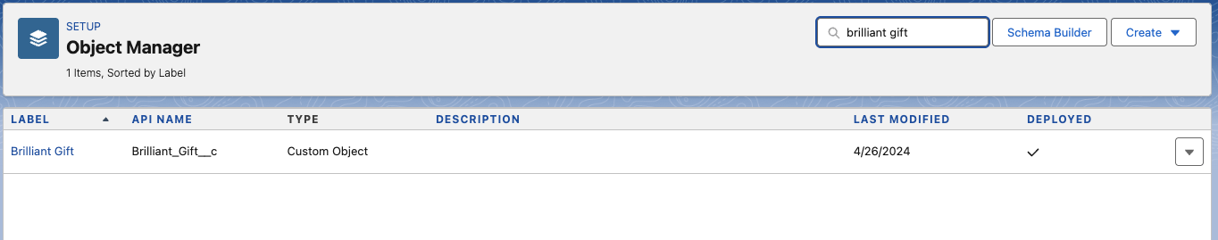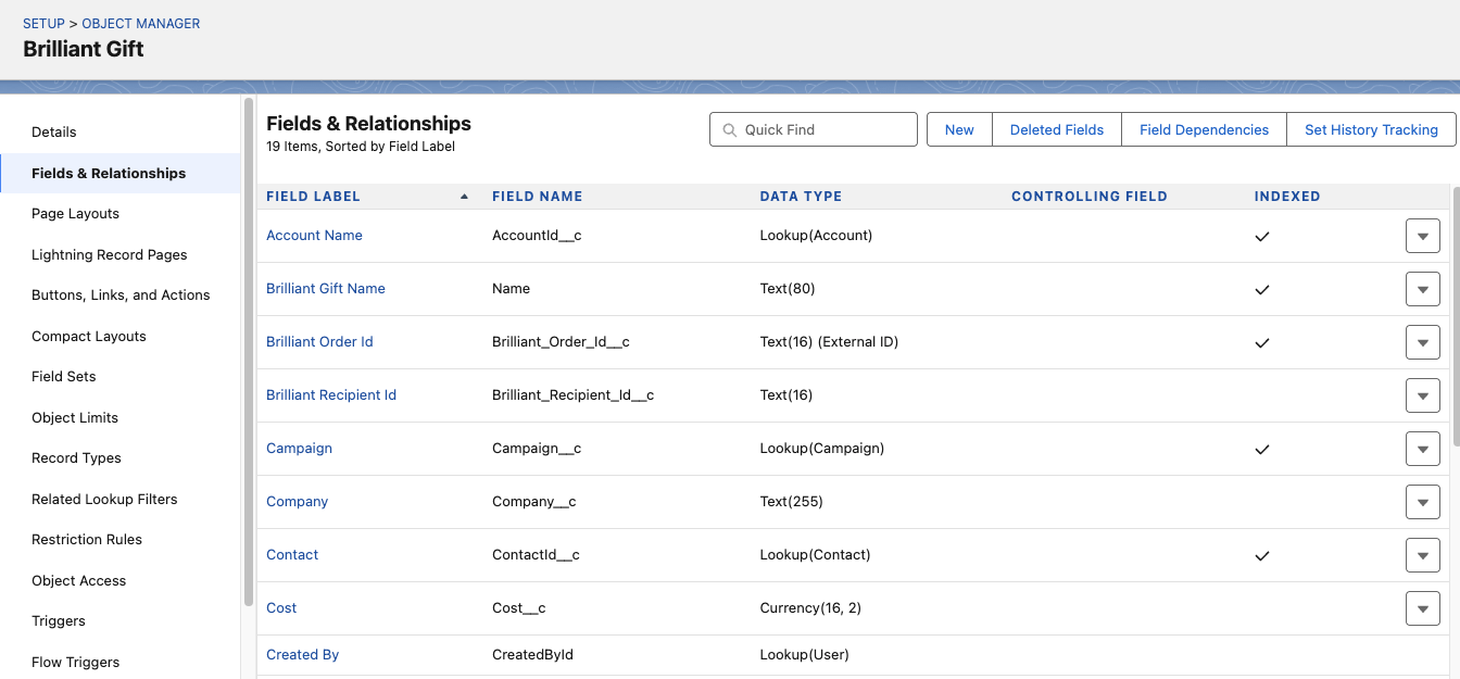 The integration will push data from Brilliant to a custom gift object in your Salesforce instance. You will need to create this custom object according to the instructions below: