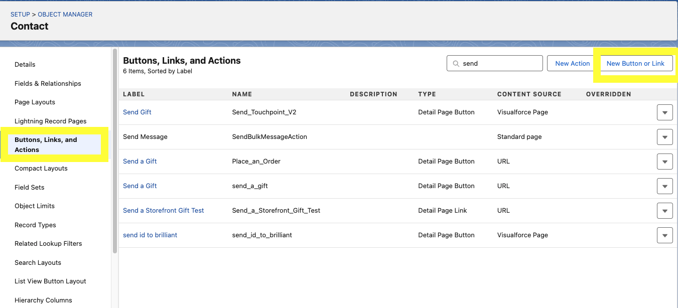 In order to connect Brilliant to your Salesforce instance, please have your Salesforce admin follow the steps below to create a custom Send a Gift button for Contacts and Leads, create a custom Brilliant Gift object, create custom fields for Events, set up user permissions, and add a Related List Section.