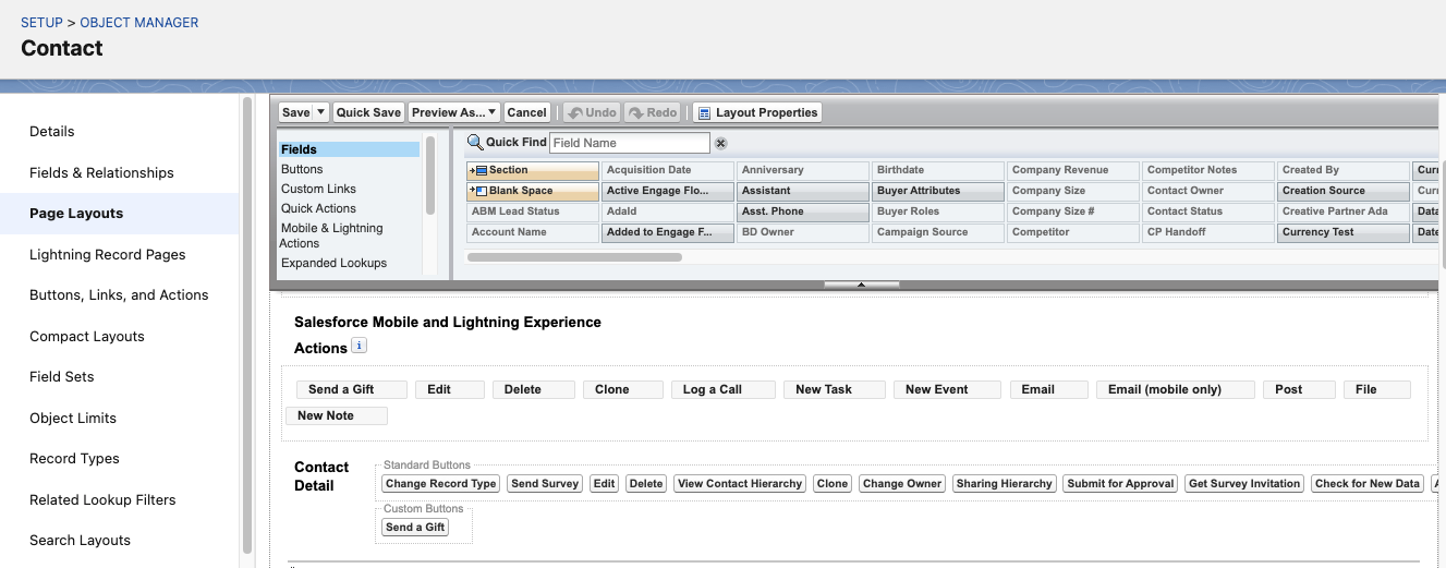 In order for users to quickly see past gifts sent to the lead or contact you can also add a related list section to the page layout.