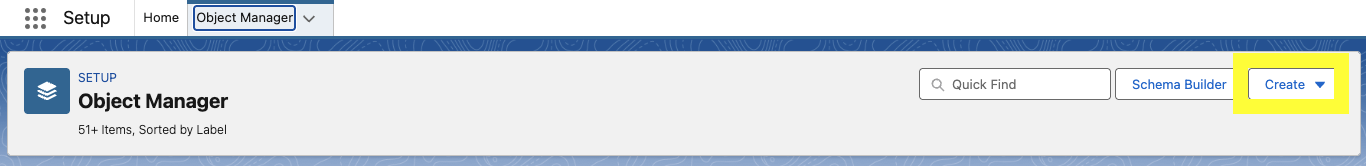 In the upper right corner, click the Create dropdown, then click Create Object.