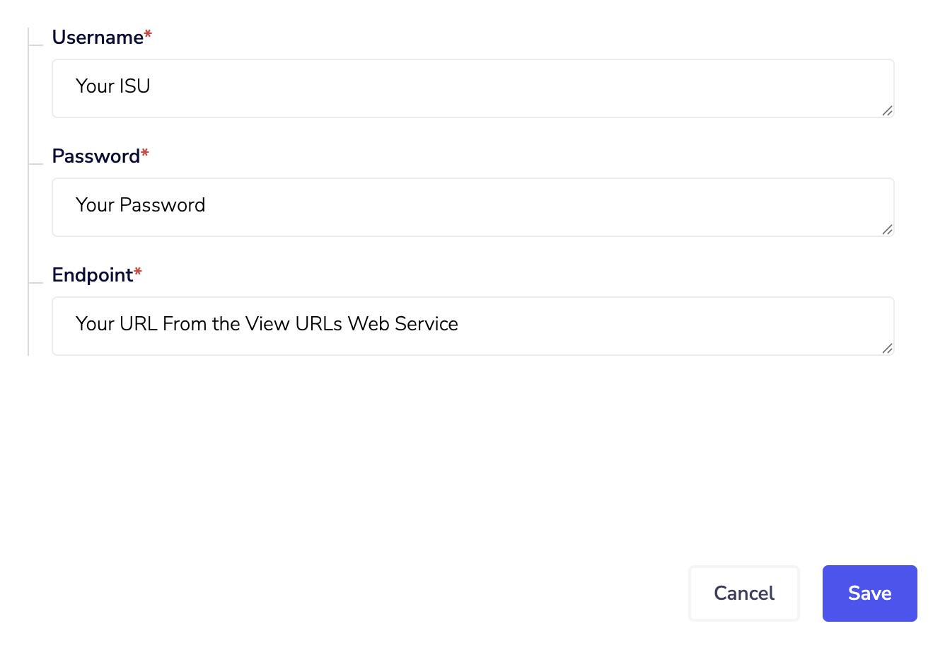 You will be asked for your account information for both Workday. Please enter your integration system user credentials, including the username, password, and RAAS endpoint. The RAAS endpoint is the reports URL obtained from the RAAS Setup above. Important: Please note your company's policy on how how often your Workday credentials need to be refreshed. If your credentials expire the automation will not run. You can update your credentials through your dashboard by clicking the edit button or reach out to Brilliant for assistance.
