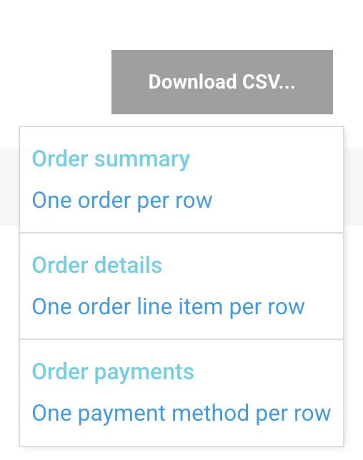Grab all your order data at once by clicking "Download CSV..." and choosing from the following options: