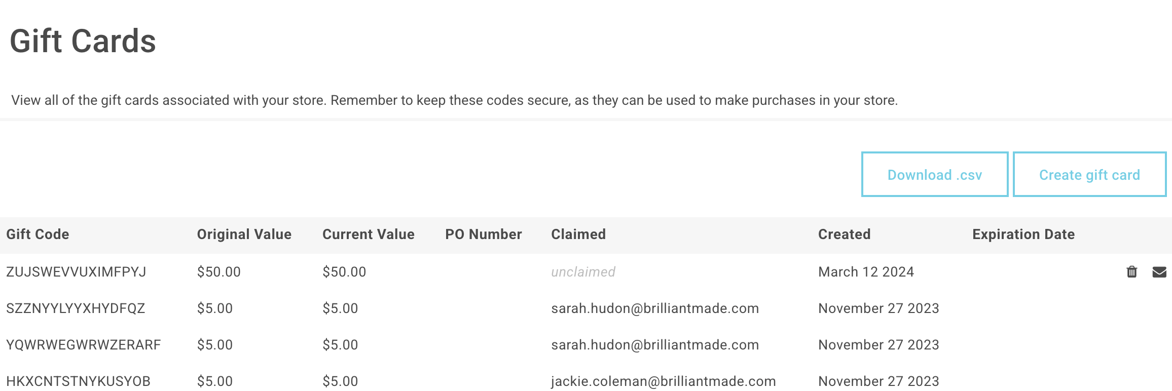 For details on how to Create Gift Cards for users, see our guide here.